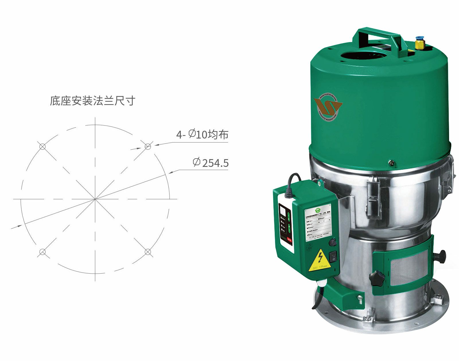 性能特点料斗和底座可任意方向调节。采用磁簧开关,感应灵敏、质量稳定。采用碳刷式高压风机,体积小、噪音小、寿命长。具有压缩空气自动喷洗清网功能。