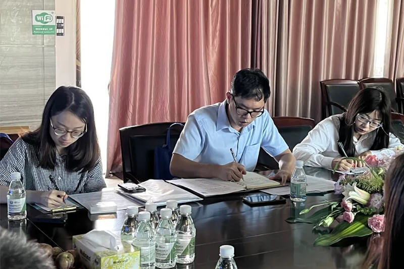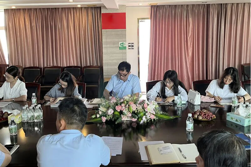 参观完生产车间,调研组来到会议室与公司陪同领导进行了深入交流与沟通。首先李总向调研组介绍了4001老百汇net集团的发展现况,接着了解了企业主导产品、规模产值、经济效益和发展规划等情况,询问存在的困难问题和需求建议以及存在的困难和问题,同时调研组还宣讲了国家相关政策和发展导向。